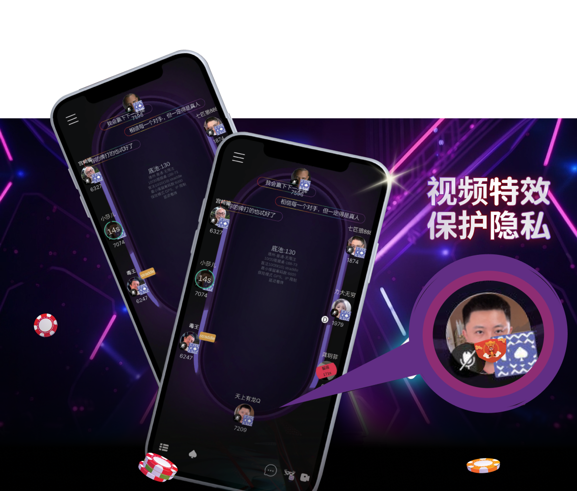 支持视频/语音/特效桌,随机入桌 AI算法巡桌,防止伙牌机器人